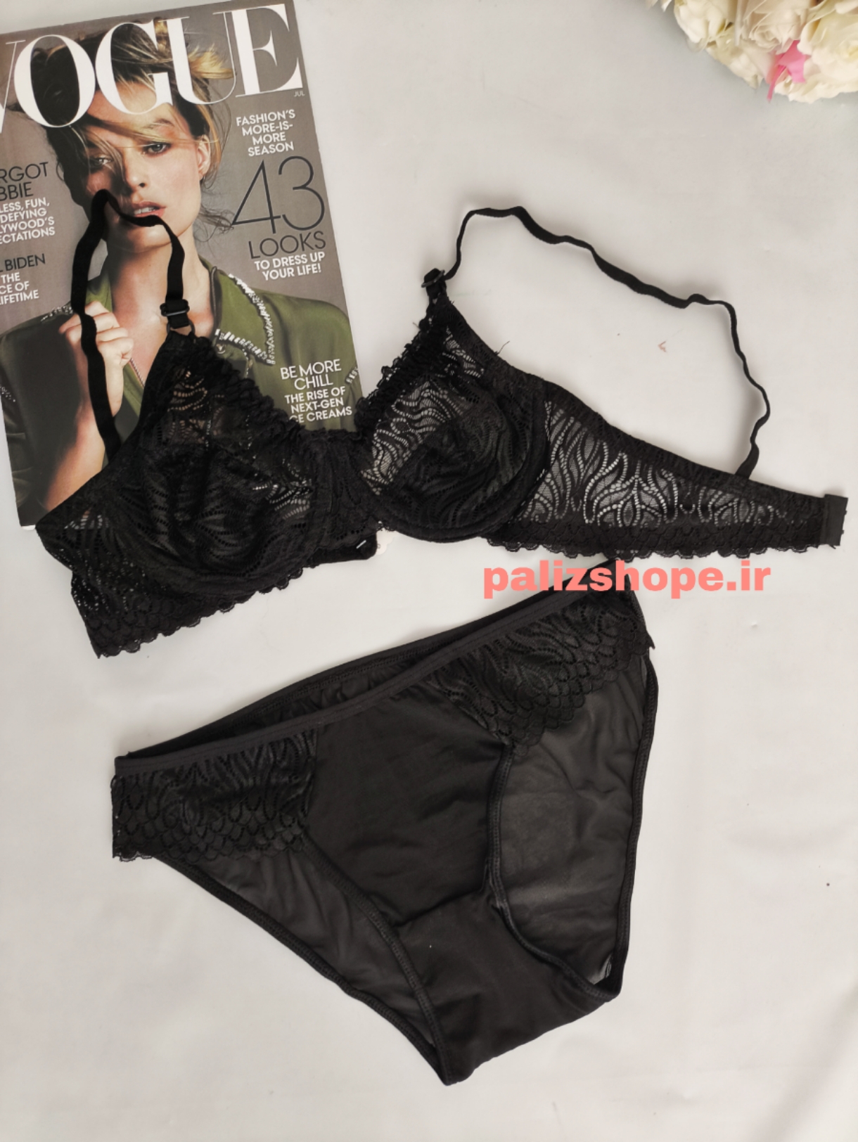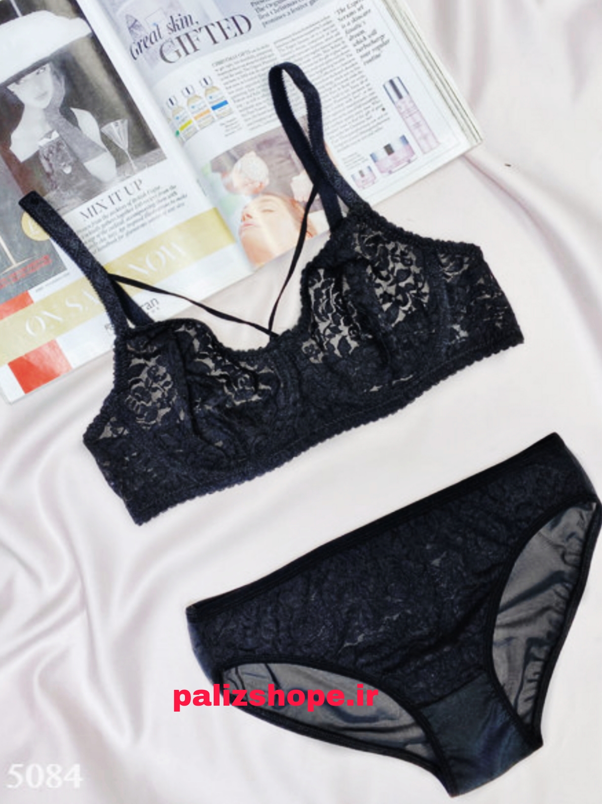 ست لباس زیر فانتزی گیپوری طرح گل رنگ مشکی