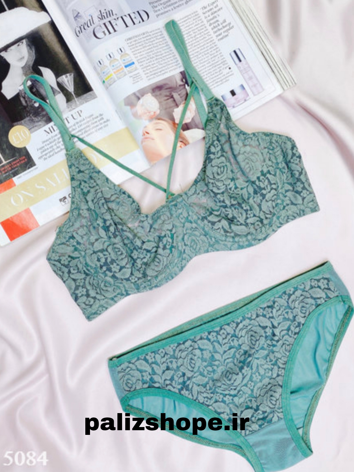 ناموجودست لباس زیر فانتزی گیپوری طرح گندم رنگ طوسی