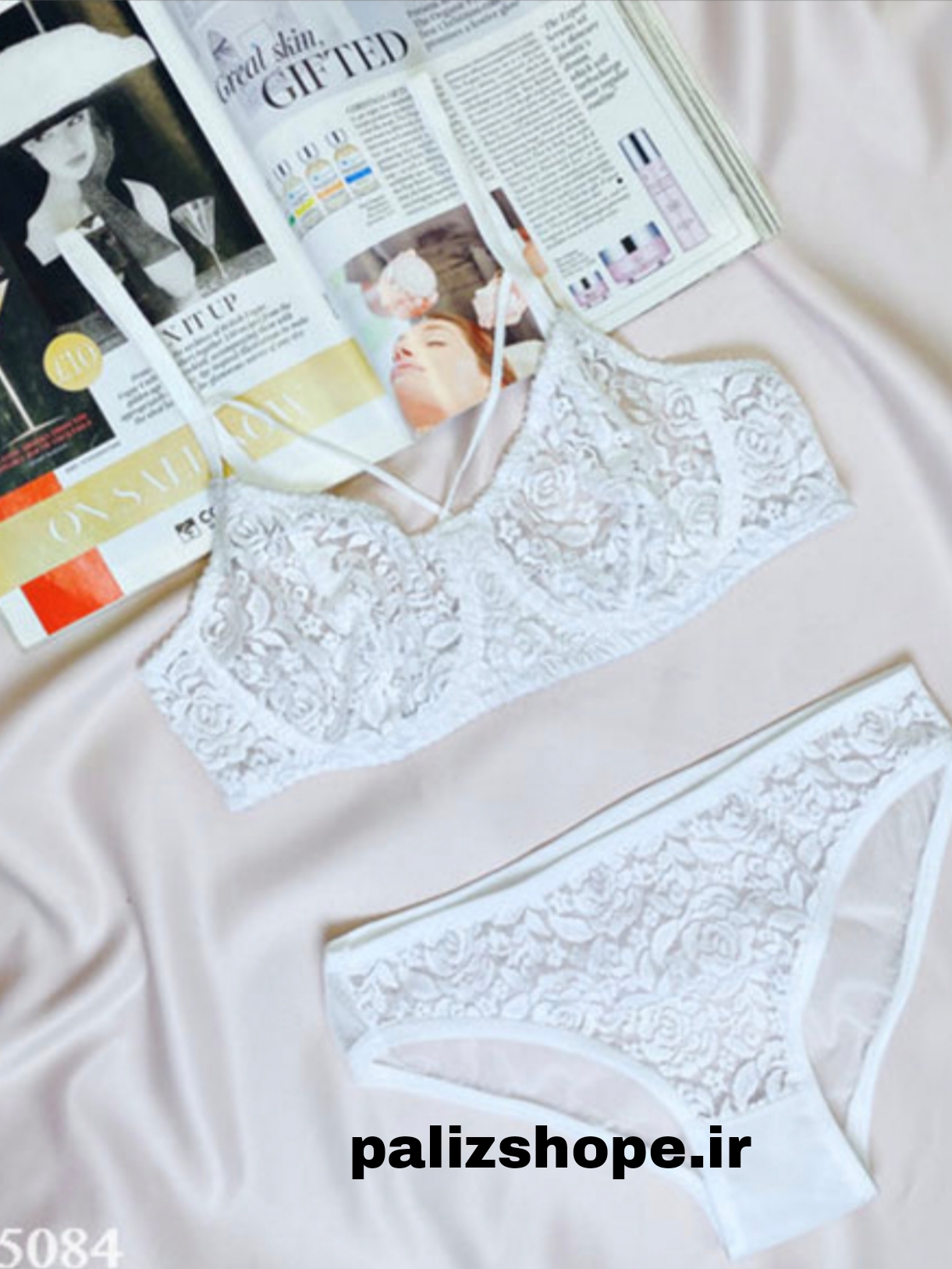 ست لباس زیر فانتزی گیپوری طرح گل رنگ سفید