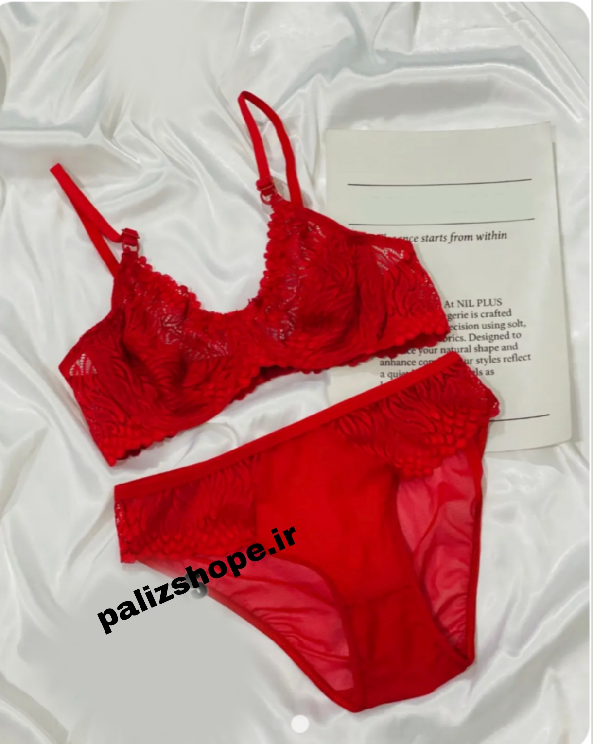 ست لباس زیر فانتزی گیپوری طرح درختی رنگ قرمز