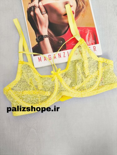 سوتین نخی کاسه گیپوری با دستکهای نخی فنردار شارمین رنگ لیمویی