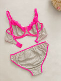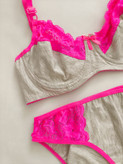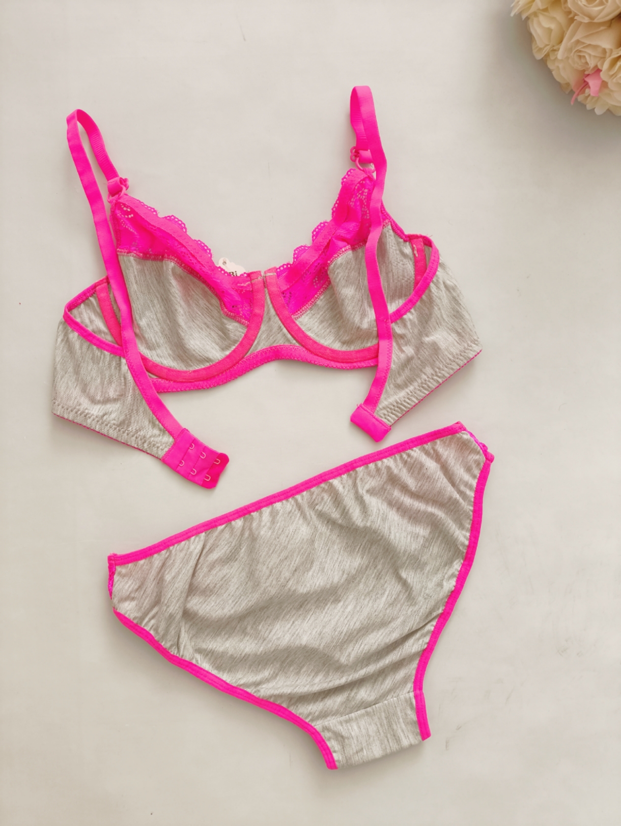 ست لباس زیر زنانه نخی ملانژ رنگ سرخابی
