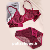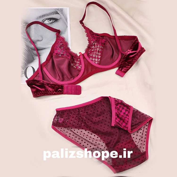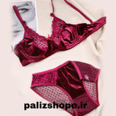 ست شورت و سوتین فانتزی گیپور و مخمل رنگ زرشکی