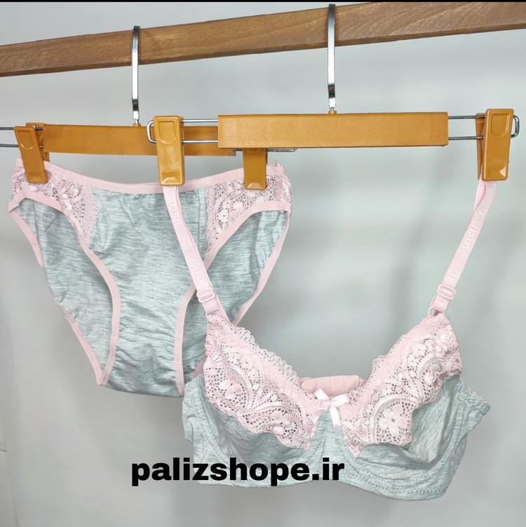 ست لباس زیر نخی ملانژ زنانه دو رنگ صورتی و یاسی