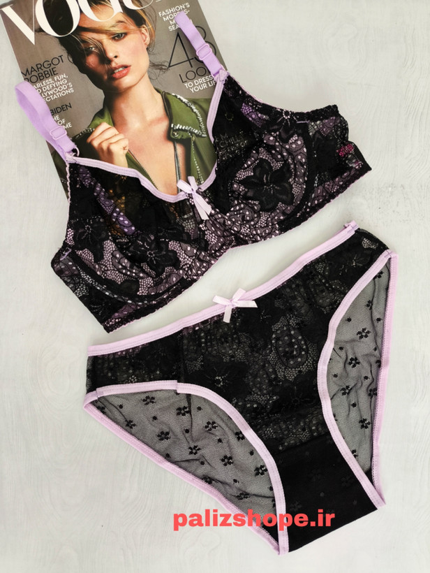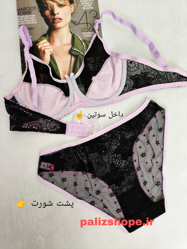 ست شورت و سوتین فانتزی گیپوری طرحدار مدل دورنگ بنفش