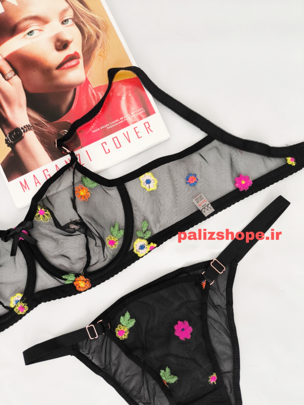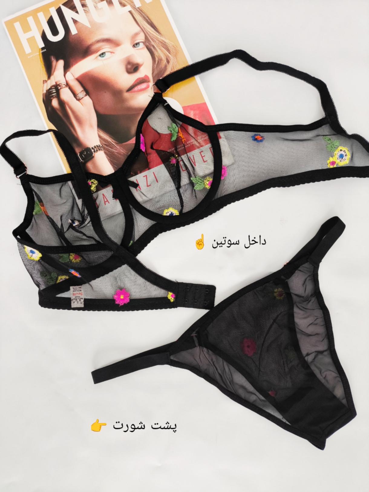 ست لباس زیر شیشه‌ای طرح بابونه رنگ مشکی