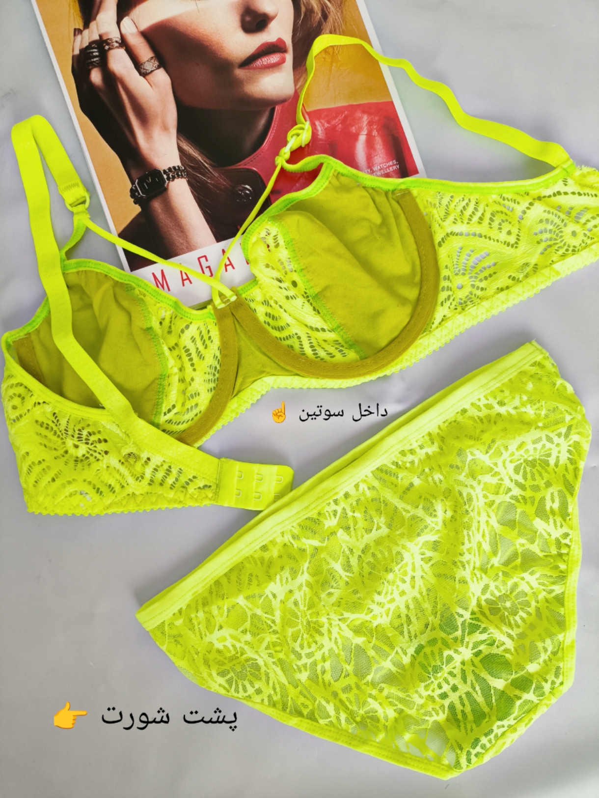 ست لباس زیر زنانه مدل خورشیدی رنگ فسفری